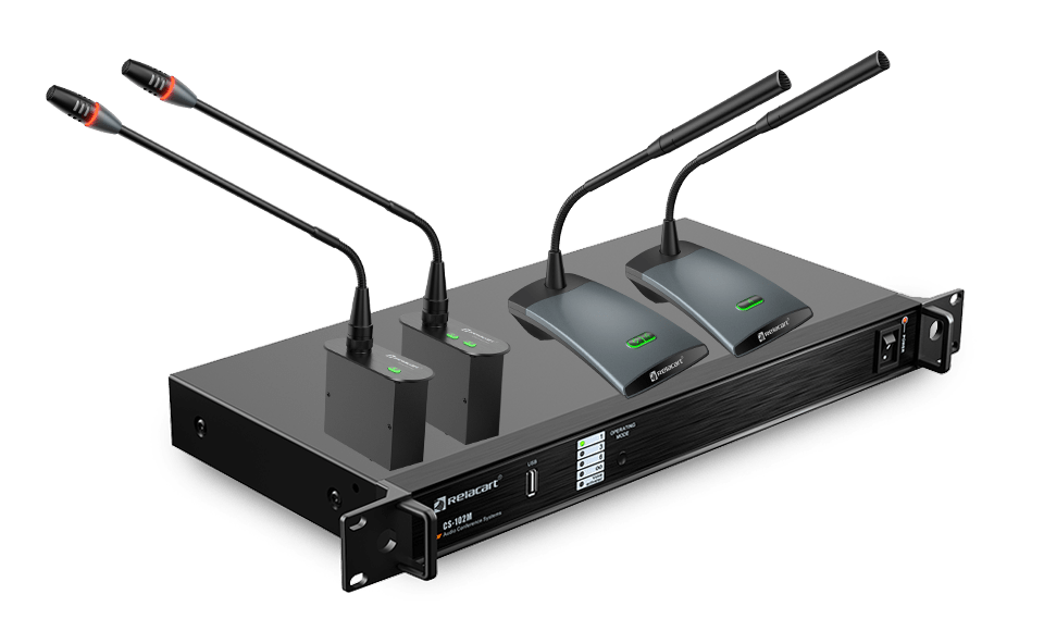 El CS-102M es un sistema de audioconferencia para debates sencillo y asequible. El controlador central CS-102M es el centro de control de todo el sistema, incluida la selección del modo de conferencia, el nivel de refuerzo de sonido de salida externa, la función de entrada de línea, etc. El sistema se puede conectar a 45 unidades de micrófono, con ganancia automática de entrada de voz, supresión de aullidos, FIFO y funciones de control de voz; se puede conectar a un amplificador de potencia externo para refuerzo de sonido; Se puede instalar directamente en un rack 1U estándar EIA, con un cable de conexión de 10 metros, con función de entrada y salida de señal de audio auxiliar, fácil de conectar otros dispositivos.