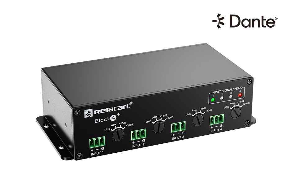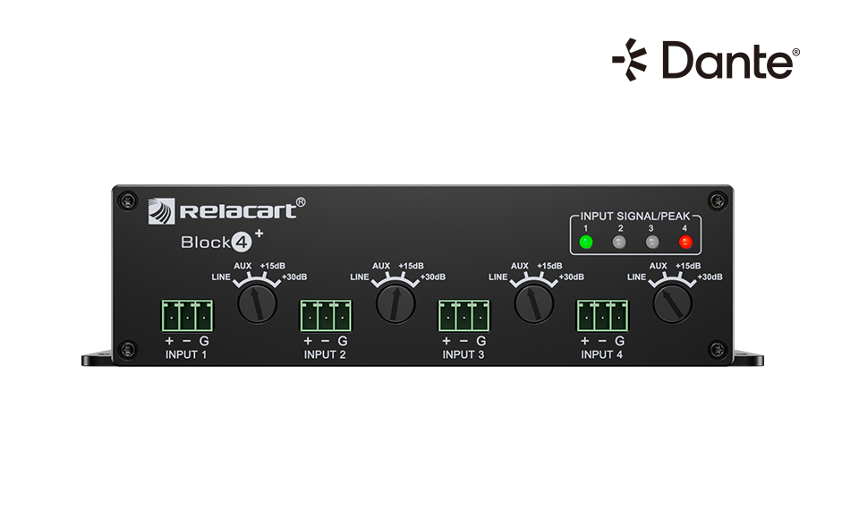 El Block 4+ es un conversor de audio Dante potente y fácil de usar, que ofrece 4 entradas de micrófono (con alimentación fantasma de 48 V)/4 entradas de línea/4 entradas auxiliares y 4 salidas de línea. Proporciona una solución completa de procesamiento de audio para optimizar lugares y sistemas específicos. Ideal para aplicaciones de audio Dante, así como para actualizar sistemas de audio tradicionales.