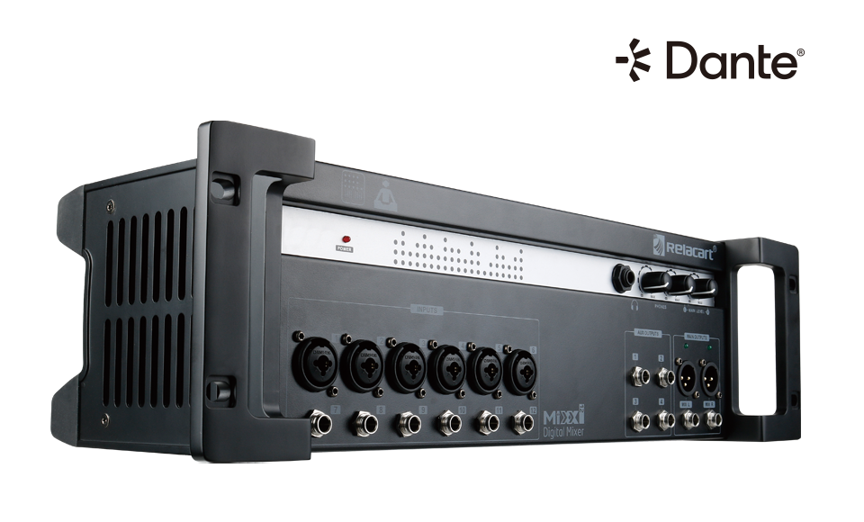 12 entradas analógicas, 6 salidas analógicas, 4 entradas Dante, 4 salidas Dante