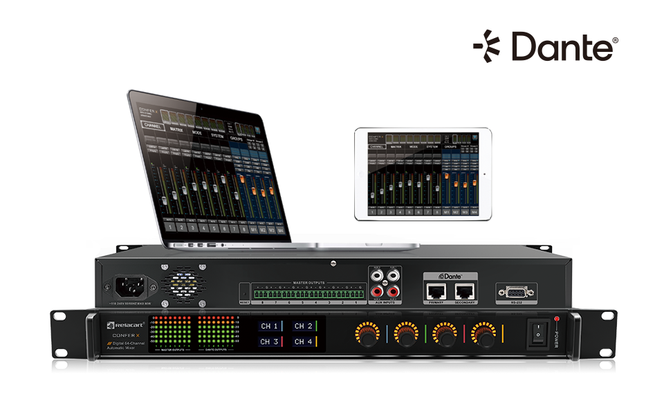 Relacarte a ti mismo-desarrollado automático digital Mezclador, con entrada de 64 canales, salida de 16 canales y soporte para Dante. protocolo de red de audio. Puede controlarse mediante la matriz híbrida digital Dante y configurarse mediante un software especial conectado a una computadora y tableta. Puede abrir automáticamente la captación del micrófono a través de la configuración del umbral de ruido de cada micrófono y realizar una gestión inteligente automática de los micrófonos en el sitio. Debido a las características del protocolo de red de audio Dante, el equipo de varios estudios se puede controlar de forma centralizada, ¡lo cual es más inteligente y conveniente!