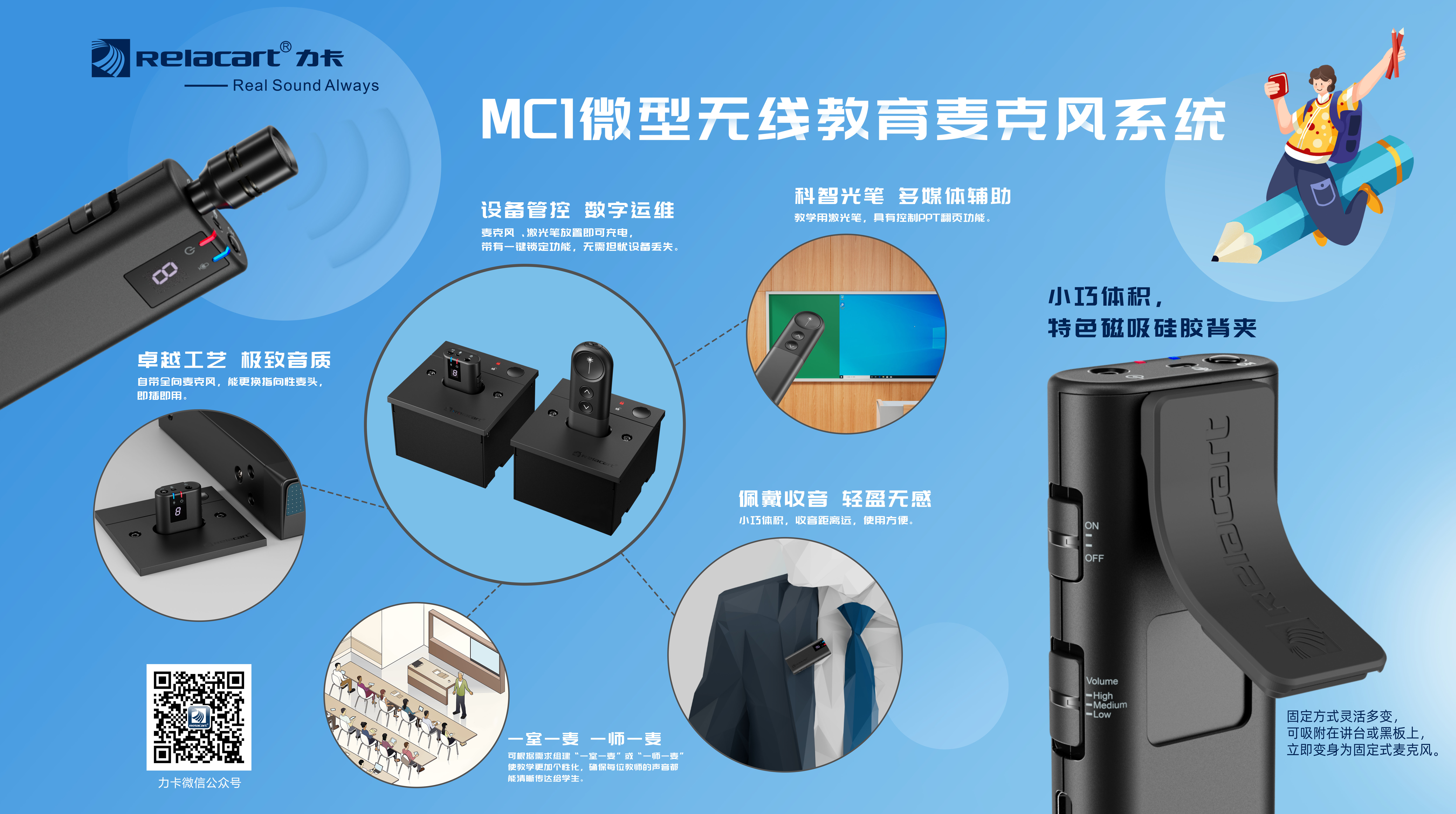 El mini sistema de micrófono educativo inalámbrico MC1 es un producto clave lanzado por Relacart después de una investigación en profundidad, dirigida a los puntos débiles de los equipos de audio en la industria educativa. El exclusivo clip trasero de succión magnética de silicona permite una fijación flexible y versátil, que se puede acoplar al collar, así como al podio o pizarra para usarlo como micrófono fijo.