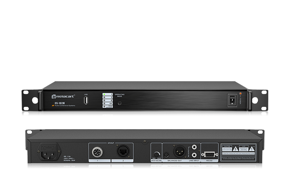 El CS-102M es un sistema de audioconferencia para debates sencillo y asequible. El controlador central CS-102M es el centro de control de todo el sistema, incluida la selección del modo de conferencia, el nivel de refuerzo de sonido de salida externa, la función de entrada de línea, etc. El sistema se puede conectar a 45 unidades de micrófono, con ganancia automática de entrada de voz, supresión de aullidos, FIFO y funciones de control de voz; se puede conectar a un amplificador de potencia externo para refuerzo de sonido; Se puede instalar directamente en un rack 1U estándar EIA, con un cable de conexión de 10 metros, con función de entrada y salida de señal de audio auxiliar, fácil de conectar otros dispositivos.