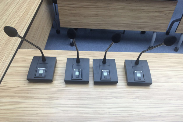 (Edificio de ciencia y tecnología ferroviaria de Hefei China) "Digital-Relacart" se lanzó en la sala de conferencias del edificio de ciencia y tecnología ferroviaria de Hefei China y se seleccionó el sistema de mezcla inalámbrico inteligente automático WAM-400 para proporcionar soluciones de entorno de conferencias de alta calidad. El mezclador inalámbrico inteligente automático WAM-400 es una solución de una nueva generación de reuniones de negocios, equipado con un procesador DSP de alto rendimiento, que utiliza tecnología de control digital avanzada y tecnología de procesamiento de audio fácil de lograr un procesamiento de señal de alta calidad, con administración inteligente en tiempo real y configuración flexible, etc. Puede, según cualquier situación, usar y configurar rápidamente un sistema de conferencia inalámbrico, puede combinarse con el micrófono de conferencia inalámbrico, el micrófono de interfaz inalámbrico, los micrófonos de mano inalámbricos y los transmisores de petaca inalámbricos. La sala de conferencias del edificio de ciencia y tecnología del Ferrocarril Hefei es principalmente para uso de conferencias, por lo que el uso del partido es El micrófono inalámbrico para conferencias UD-200 proporciona un entorno de calidad para la reunión del China Railway Group.