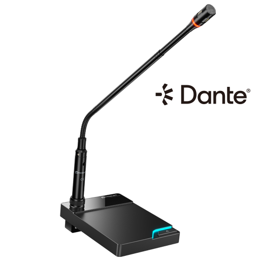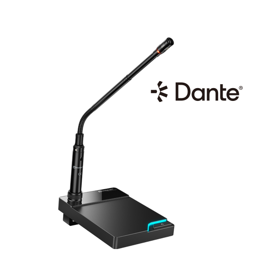 El soporte de escritorio TDN1-F permite utilizar la tecnología Dante con cualquier micrófono de condensador de cuello de cisne con alimentación fantasma y salida tipo XLRF de 3 pines. El soporte de escritorio está diseñado para aplicaciones de montaje en superficie, como refuerzo de sonido de alta calidad, conferencias, aprendizaje a distancia y otras aplicaciones exigentes de captación de sonido. Se puede utilizar con micrófonos de cuello de cisne de otras marcas.