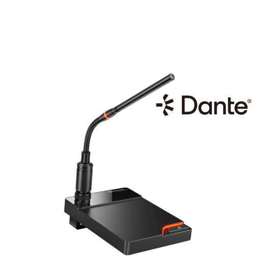 • Conéctese directamente a la red mediante un cable Ethernet, sin necesidad de costosos cables de audio ni soldaduras. • El interruptor de usuario integrado controla la conversación/silencio en modo local y activa. • Dispositivos compatibles con Dante en modo remoto. • Tipo XLRF de 3 pines con bloqueo para un montaje rápido del micrófono de cuello de cisne • Indicador LED rojo/verde. • Control local o remoto de ganancia de micrófono, filtro de corte bajo, indicador LED y alimentación fantasma de 48 V. • Alimentado por red PoE • Escalable a través de los 512 canales de audio bidireccionales de Dante.