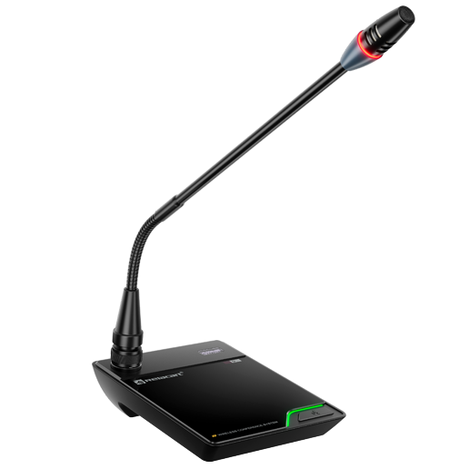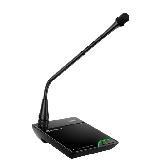 UD-223 es una base de micrófono inalámbrico para conferencias con cuello de cisne de escritorio con un diseño simple, material metálico sólido y duradero y un interruptor táctil silencioso.